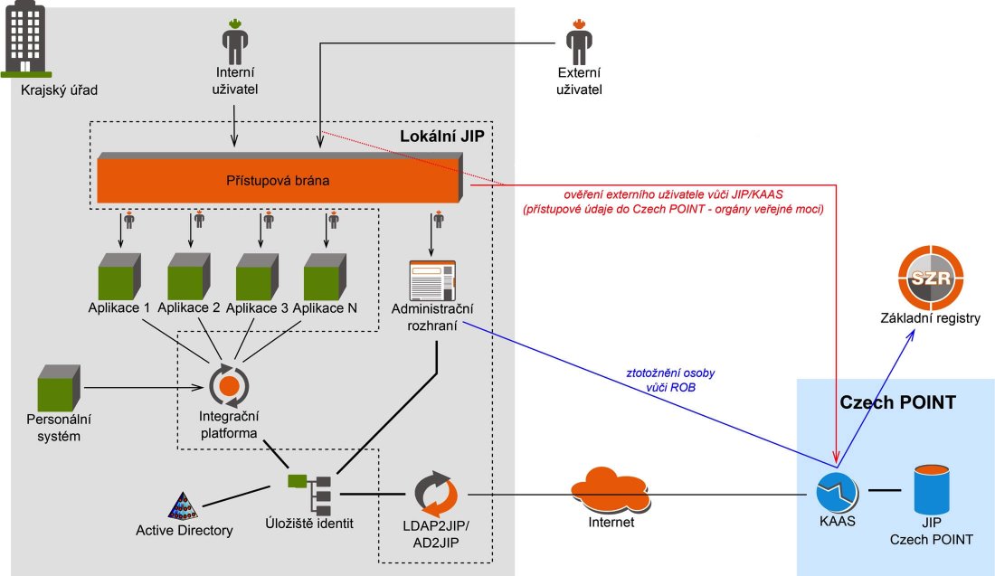 Řešení zahrnovalo také integrační komponentu (LDAP2JIP), která zajišťuje synchronizaci uživatelských identit mezi lokálním identitním prostorem MSK a identitním prostorem JIP systému CzechPOINT.